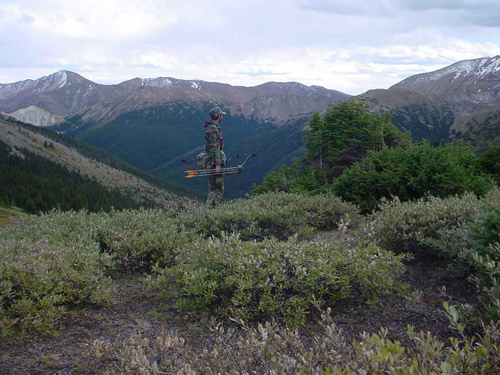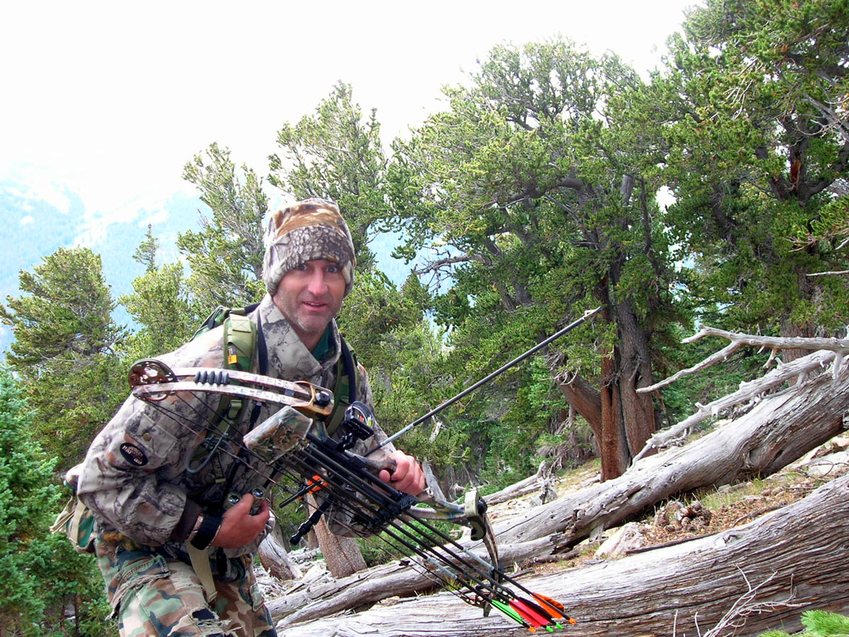 I was still 70 yards away but the wind was gusting and I had more cover. I decided to quickly move under the herd and try to get ahead of them, while keeping my eyes peeled for a ram in front or below me. As I slipped under the herd by rock hopping, leaping deadfall, and jumping on to mossy areas, the herd continued moving down along treeline. I managed to get within 25 yards of the herd when they huddled up. Four ewes and a mature ram were stacked up broadside looking to where I had just come from. Another ram was looking in the same direction just a few yards in front of the others. I focused on the ram whose curl from the side angle reached through his snout. Unfortunately, I could only see from the neck up and the cover was thick in all directions. As I tried to take 2 steps to higher ground while drawing the bow, the herd jumped above treeline without exposing a shot. I bounded out of the trees as the herd of 12 ewes and 4 mature rams trotted away. The trailing ram from the herd stopped broadside at about 55 yards and looked toward me. Only being comfortable out to 45 yards, I let the ram and herd trot over Cone Mountain. I gave a short chase but soon realized that I wasn’t going to be able to catch up to bighorn either.