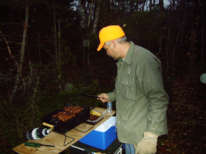 Camping out, miles from nowhere, only serves to make our trip more enjoyable. It gives us a sense of being that much closer to the woods and obviously that much further away from our daily lives that we’re putting on hold for awhile. My brother often says, “It’s not just about the buck you shot, it’s how you got him.” We both sincerely believe that success is much sweeter when you know you’ve worked harder to achieve it. Hunting in Maine is relatively still new to us, but, we are learning more each year, we know this. Taking a buck in Maine that field dresses better than two hundred pounds will earn you “The Patch”, a red embroidered insignia in the shape of the state that is awarded to you and usually sewn to the shoulder of your hunting coat. If you think this sounds rather insignificant, all I can say is go there!