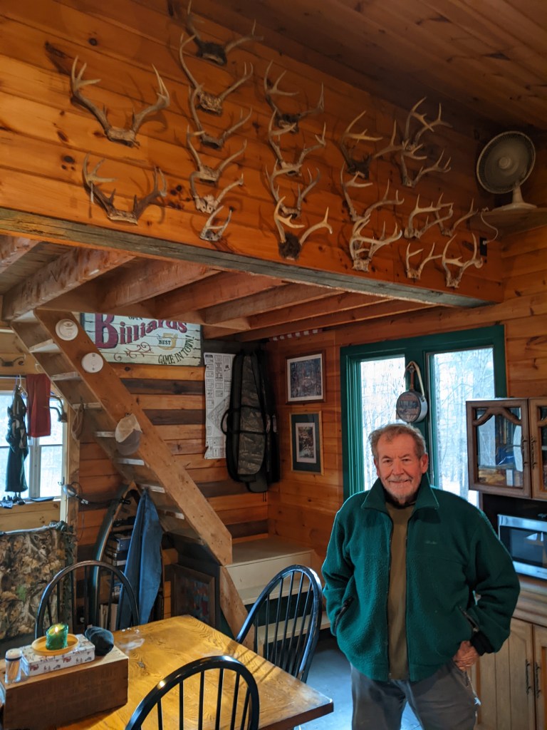 One day, years ago, I was still hunting a sliver of a hardwood spine bordered by a large swamp on my left and a long steep decline down to the “big” river on my right. I first met Charlie on that spine that day. He was as surprised to see me there as I was to see him. This was a “long way from anywhere” as he said. We introduced ourselves, exchanged some small talk and wished each other well. It turned out Charlie and his brother, Mike owned the camp with the beam that was always strained by the weight of those bucks! Over the next 15 years or so we would occasionally surprise each other with a chance encounter and always it would be far from any other boot tracks other than ours.