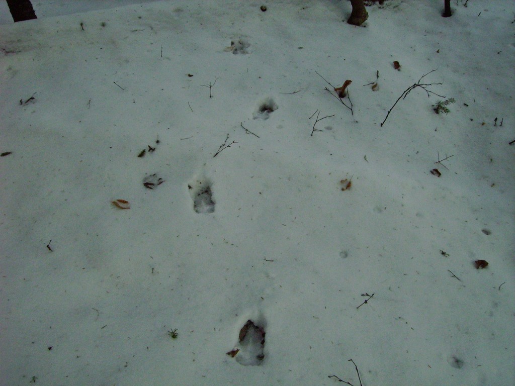 An hour and a half later I awoke ready for breakfast and a good day in the woods. My glance through the window revealed about an inch of snow was on the ground. I knew there’d probably be a little bit more where I was heading. A quick bite to eat, double check of my pack to be sure I had my snack, compass, map, knife, etc. I’d already determined that if I got “turned around” in there, use the compass and head northwest. This would get me to the road. ANY other direction and I could possibly be walking for days!